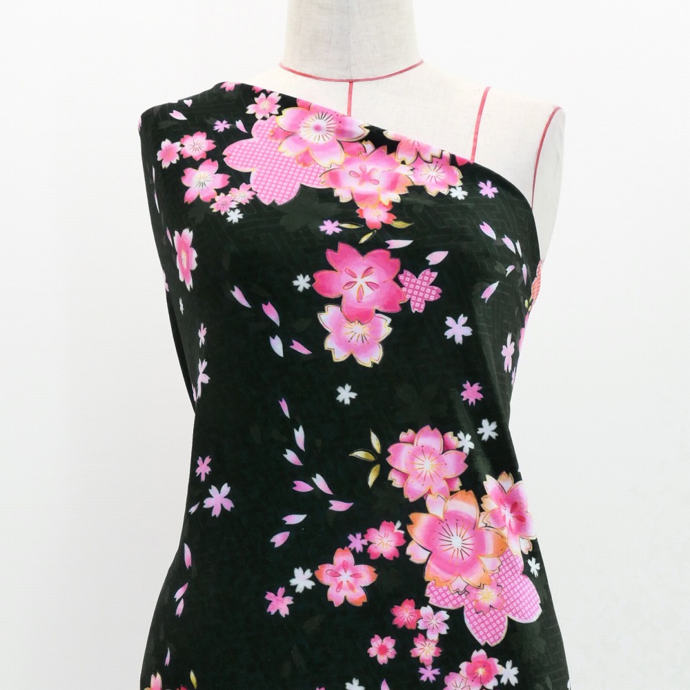 和柄生地 桜柄 コシボ・シャンタン・ストレッチベロア 選べる生地 ブラック(黒) WA-003-BK 3-5営業日後発送