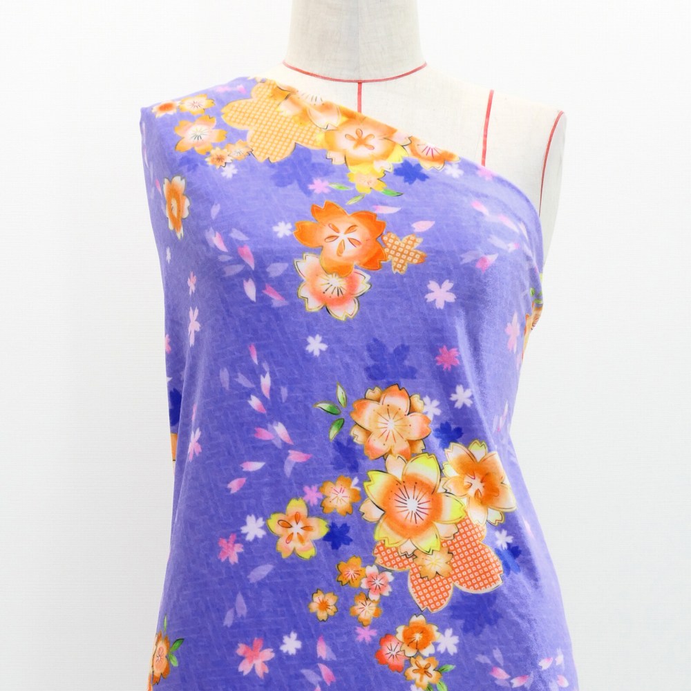 和柄生地 桜柄 コシボ・シャンタン・ストレッチベロア 選べる生地 パープル(紫) WA-003-PU 3-5営業日後発送