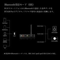 ![]() ![]() 有線と無線を自由自在に切り替え テレビの音声をお好みのスピーカーで再生したい PCのLDAC音源をお持ちのワイヤレスイヤホン・ヘッドホンで再生したい ゲームの音声を遅延なくヘッドセットで聴きたい その他多様なご要望を実現するのがBTA30proです。 ![]() Bluetoothレシーバーとして(RX:bluetooth受信モード) BTA30pro1台で、ご自宅のオーディオシステムを最先端の無線対応システムに変貌させます。 PCやスマートフォンから音声データをBluetoothで受信、デジタル/アナログ信号へ高品位に変換します。 ※受信時のBluetooth対応コーデック:SBC/AAC/aptX/aptX HD/LDAC ![]() Bluetoothトランスミッターとして(TX:bluetooth送信モード) テレビ/CDプレーヤー/PCのデジタル出力を変換し、Bluetoothで送信します。 高音質を誇るLDACやゲーム・映画鑑賞に最適な低遅延のaptx LLなど、コンテンツにあわせた最適なコーデックを選択することが可能です。 ケーブルの制約を受けず自由度の高いリスニング環境を構築できるのも魅力です。 ※送信時の対応コーデック:SBC/aptX/aptX LL/aptX HD/LDAC ※LDACは光/同軸/USB入力時に使用可能 ![]() DAC、DDCとして デジタルデコードモードをONにすることで、BTA30 Proを高性能なD/AコンバーターまたはD/Dコンバーターとして使用することができます。 さらに、アプリから設定を変更することで、USB Audio Class2.0およびUSB Audio Class1.0の切り替え機能も搭載。 ハイレゾ音源を楽しむこともゲーム機を高音質で楽しむことも自由自在です。 ![]() 送受信距離30m Bluetooth接続用に外付け高ゲインアンテナを採用することで、CSR8675チップの能力を最大限に引き出します。 通常の使用条件下であれば、最大30mの範囲でより高速な接続速度とより安定した信号伝送が可能です。 ![]() 豊富な付属品 ・クイックスタートガイド ・保証書 ・USBタイプA to タイプCケーブル ・RCAケーブル ・ラバーフット ![]() |