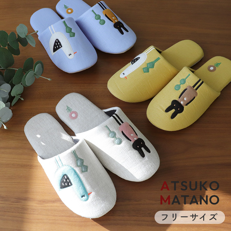 スリッパ 室内 おしゃれ 来客用 トイレ レディース マタノアツコ かわいい 前詰まり 麻 綿 アップリケ 刺繍 ウサギ 鳥 ルームシューズ 部屋履き 出会い AM39006