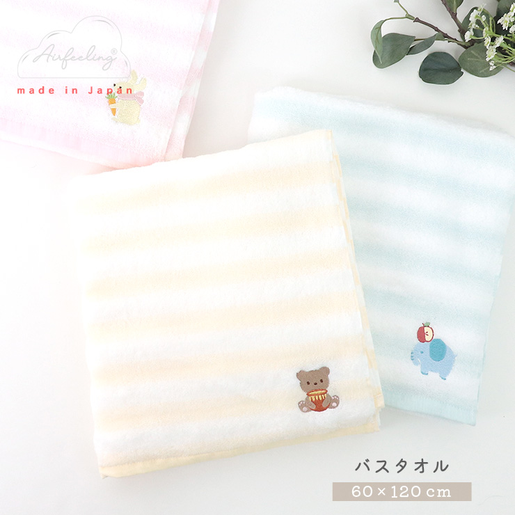 タオル バスタオル 日本製 60×120cm パイル 赤ちゃん おしゃれ 吸水 速乾 柔らかい 軽い うさぎ ぞう くま 綿 コットン そらとぶタオル SRWA-400
