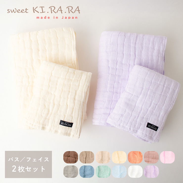 ガーゼタオル 2枚セット ガーゼ フェイスタオル バスタオル ベビー 日本製 無地 スウィートキララ フワリー 25cm 50cm 110cm 真珠糸 タオル