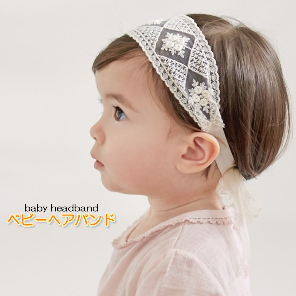 ベビー ヘアバンド 女の子 レース ベージュ リボン