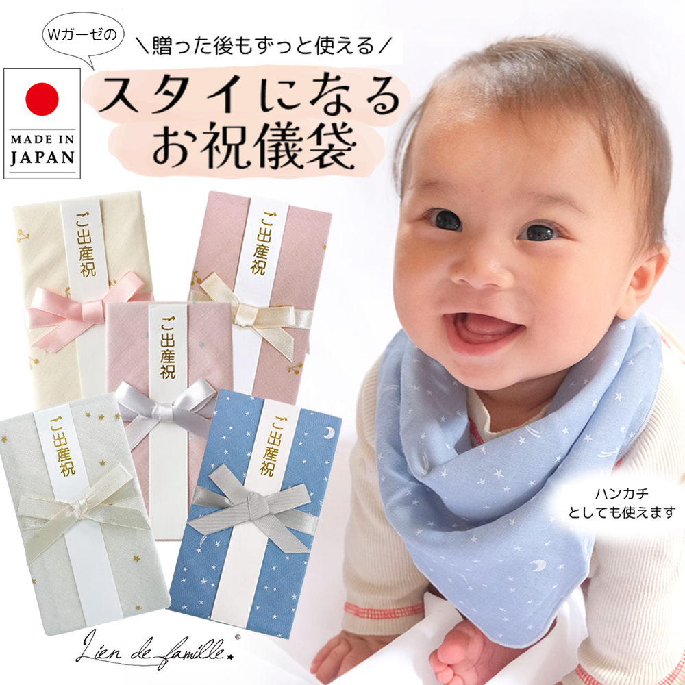 祝儀袋 ご祝儀袋 出産 結婚 お祝い 日本製 Lien de famile リヤンドファミーユ ガーゼ スタイ よだれかけ ハンカチ 綿100% 初節句 おしゃれ