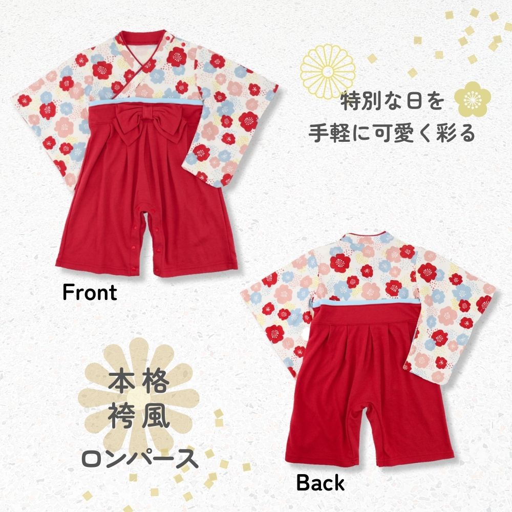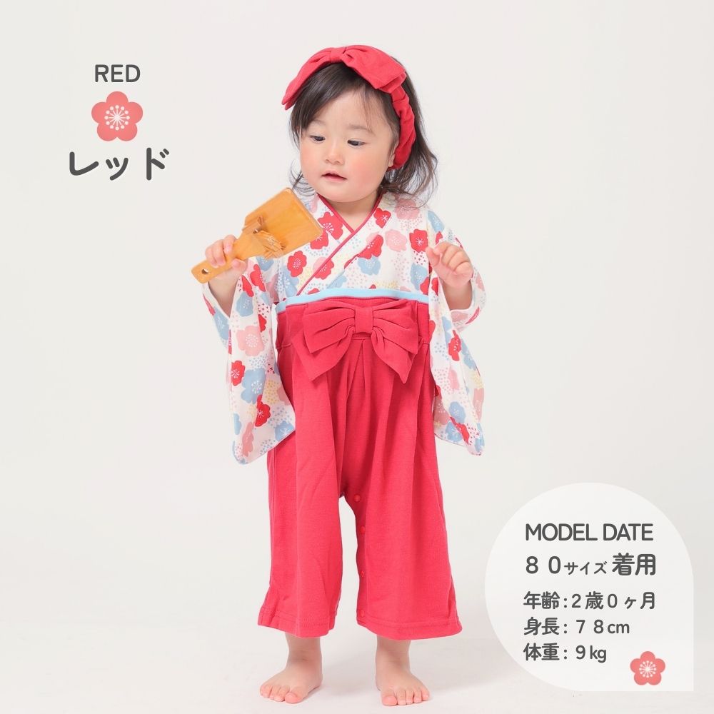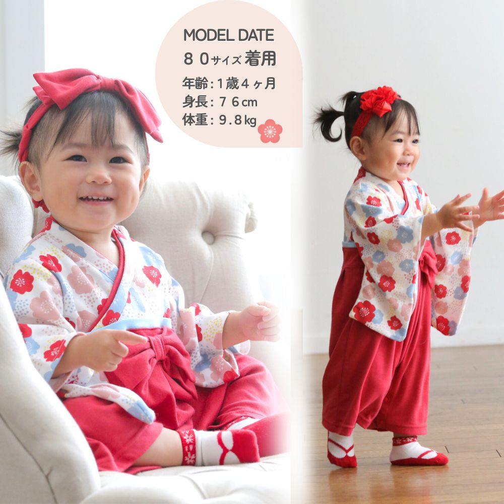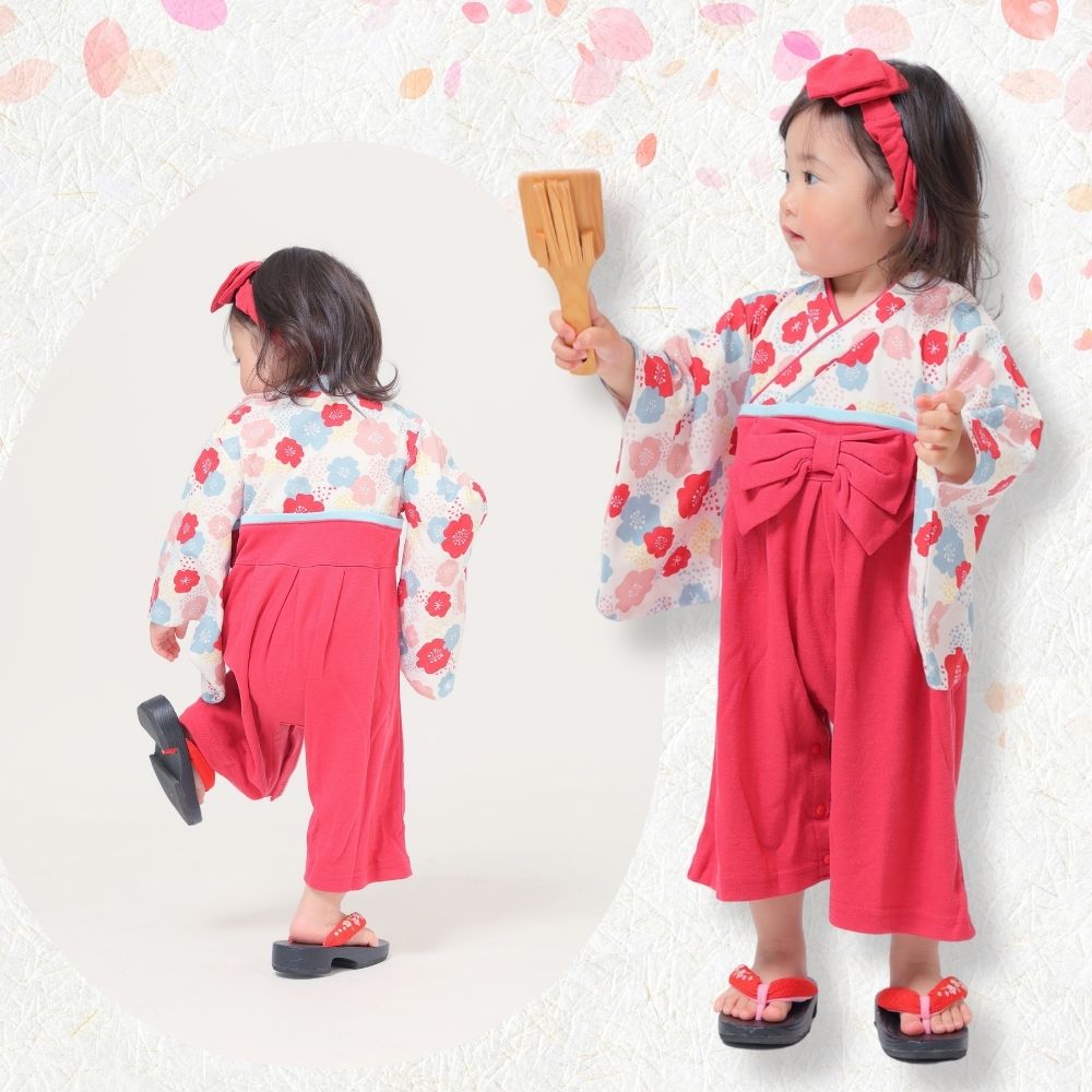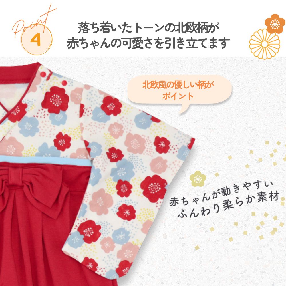 袴ロンパース はかま ロンパース 北欧柄 アエナック Aenak ヘアバンド ベビー 赤ちゃん 女の子 着物 和装 60 70 80 90