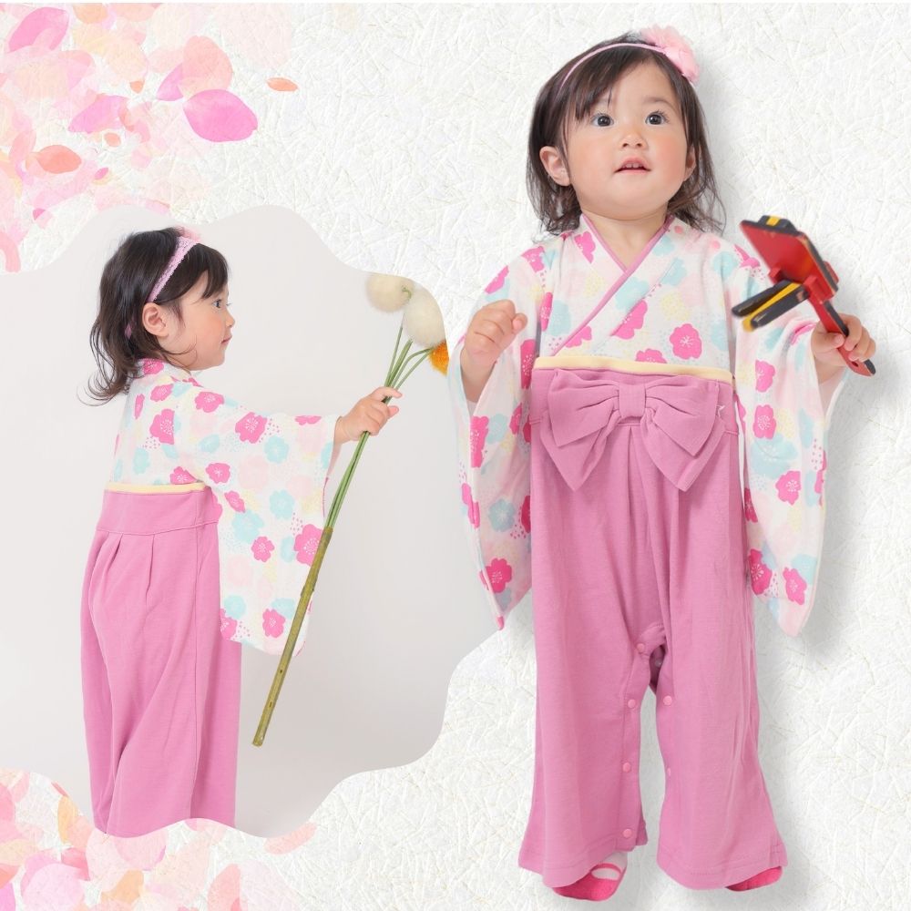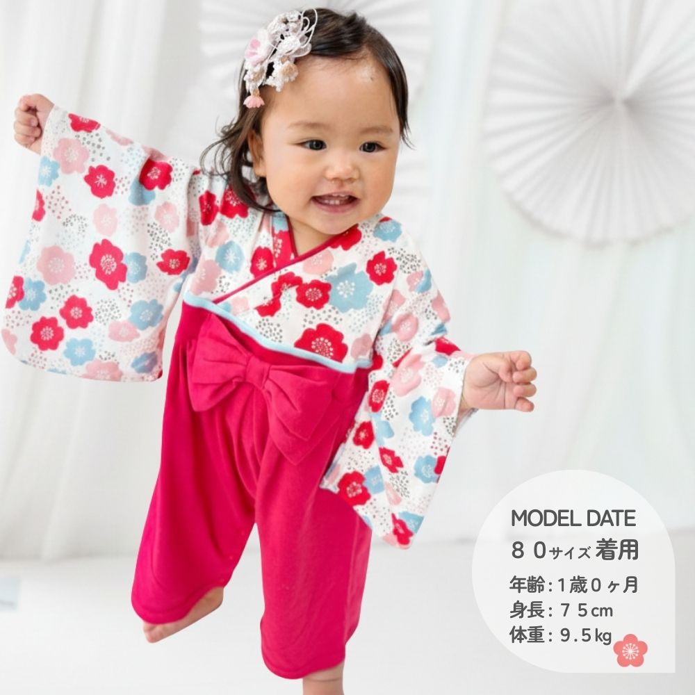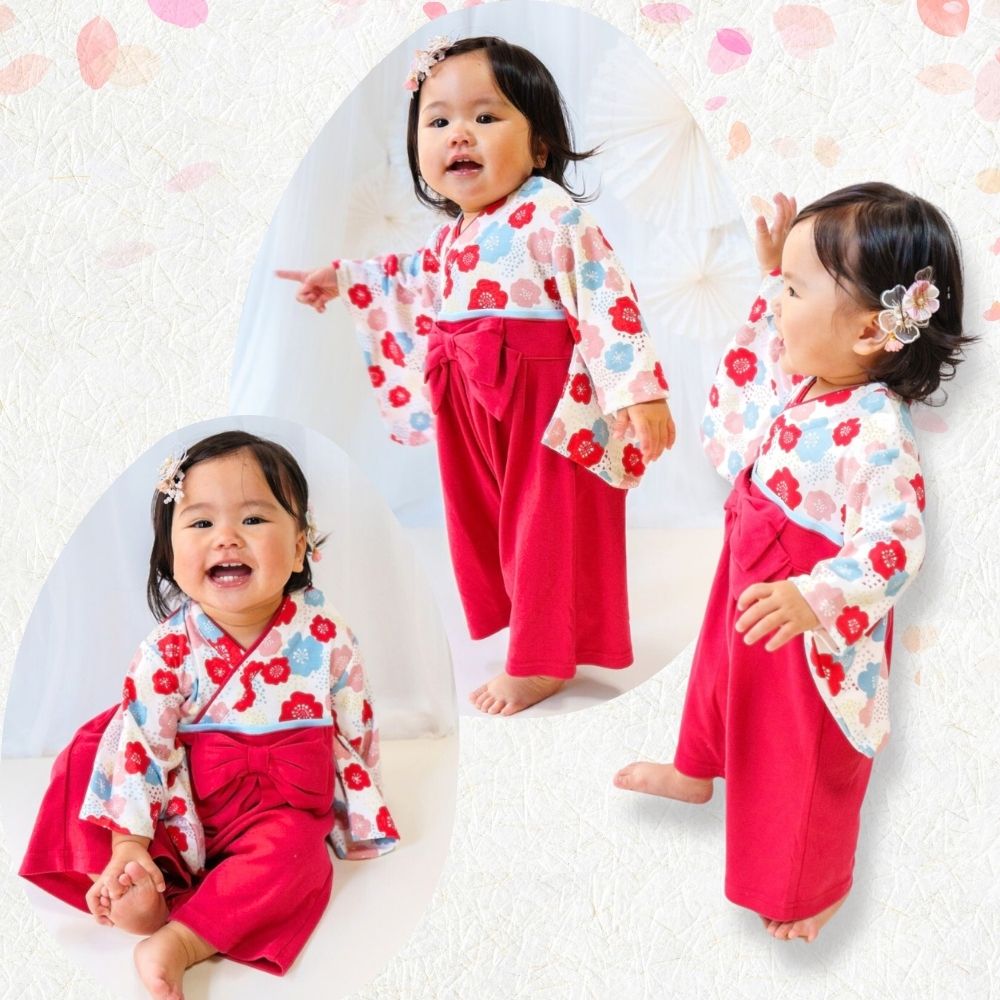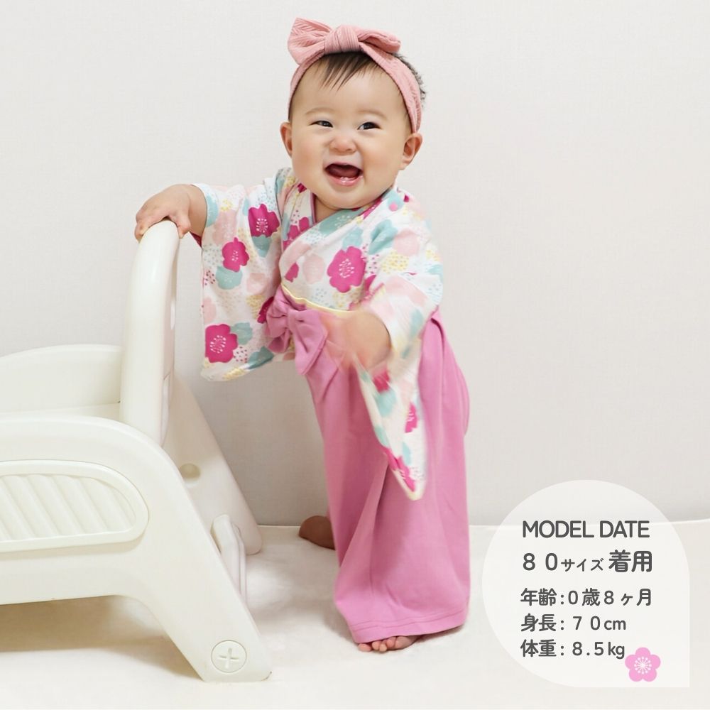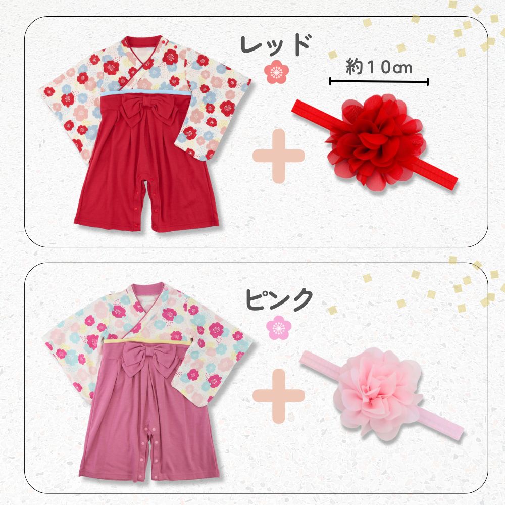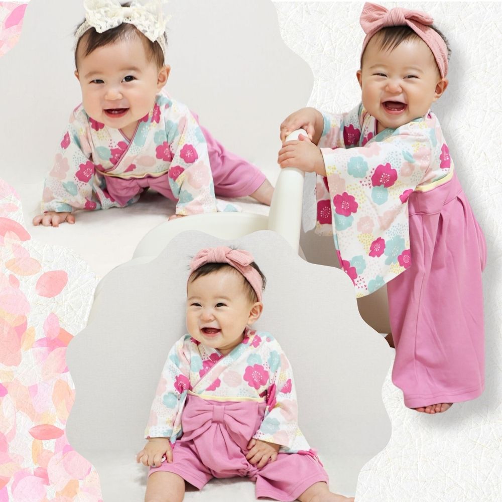 袴ロンパース はかま ロンパース 北欧柄 アエナック Aenak ヘアバンド ベビー 赤ちゃん 女の子 着物 和装 60 70 80 90