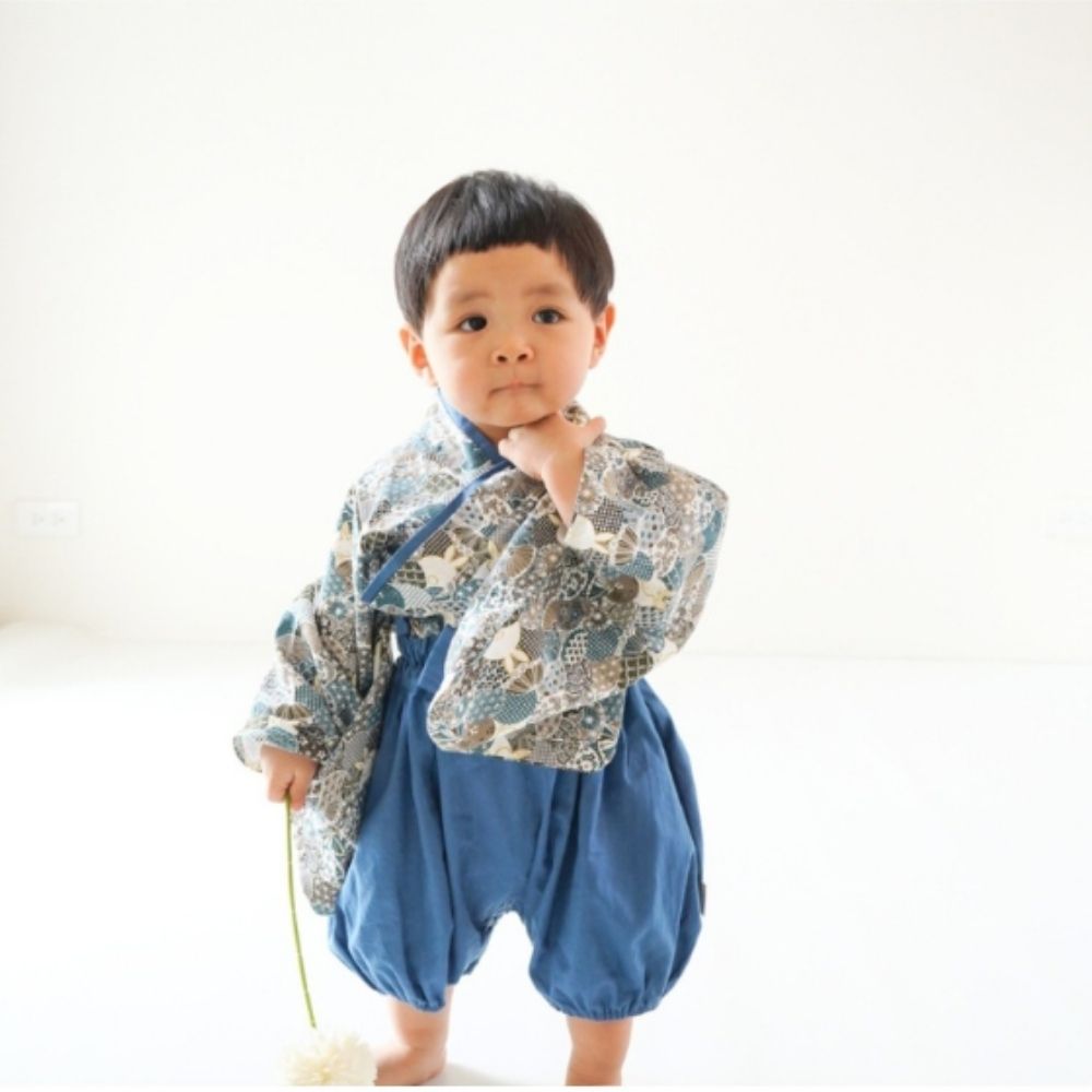 袴 はかま セパレート セットアップ 靴下 セット 着物 和服 ベビー 赤ちゃん 男の子 ロンパース 衣装 ネイビー 70 80 90