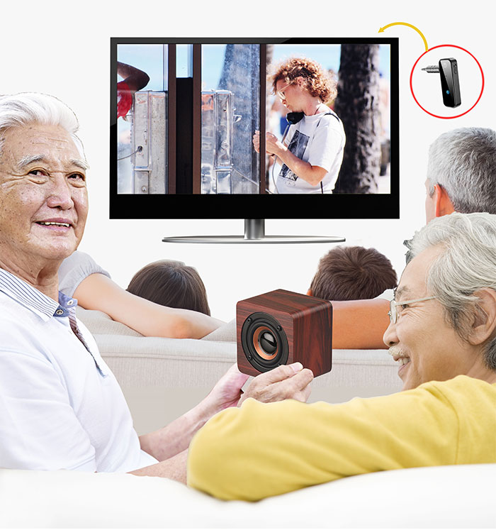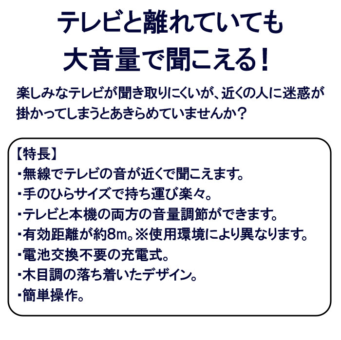 スピーカーを手元に置くと無線でテレビの音が近くで聞こえます。