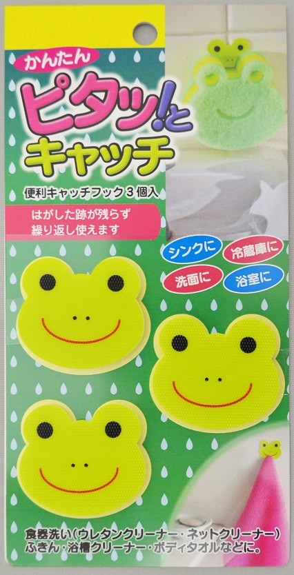 カエルの便利キャッチフック 3個組 ※メール便(ポスト投函) 洗面台 キッチン 台所 冷蔵庫 ふきん スポンジ 洗面台 浴室 日本製