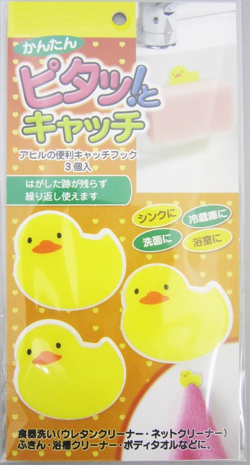 アヒルの便利キャッチフック 3個組 メール便(ポスト投函) ワンタッチ 洗面台 キッチン ふきん スポンジ 台所 冷蔵庫 洗面台 浴室 日本製