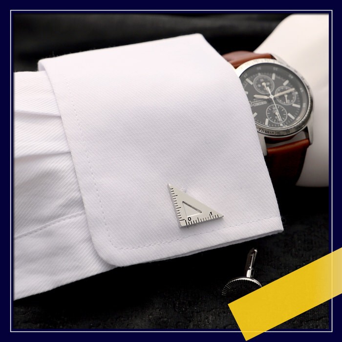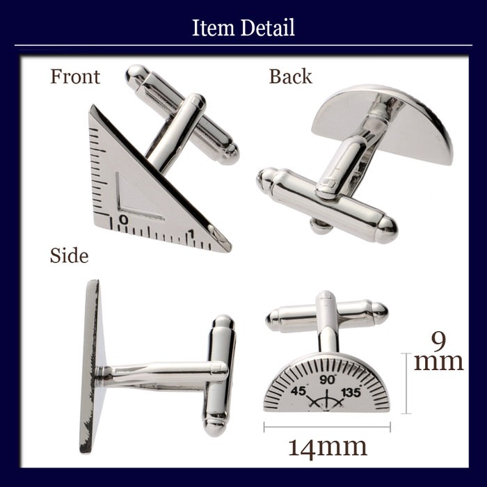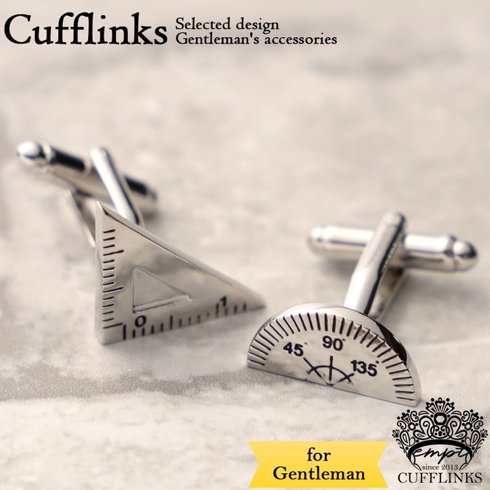 ■ 商品名 : 定規 三角 円 丸 文房具 モチーフ カフス シルバー 銀