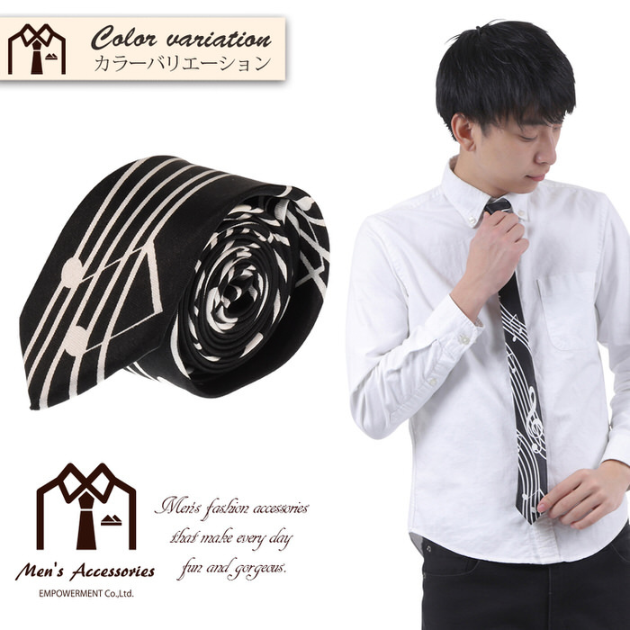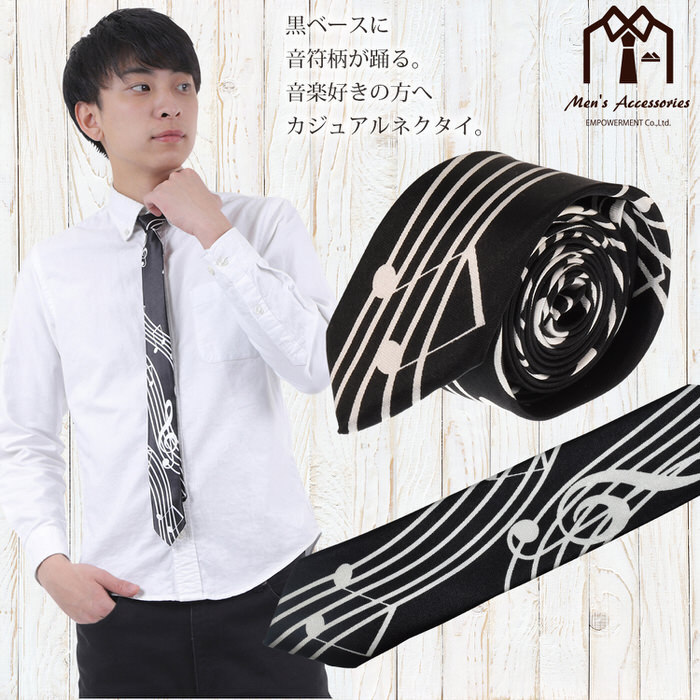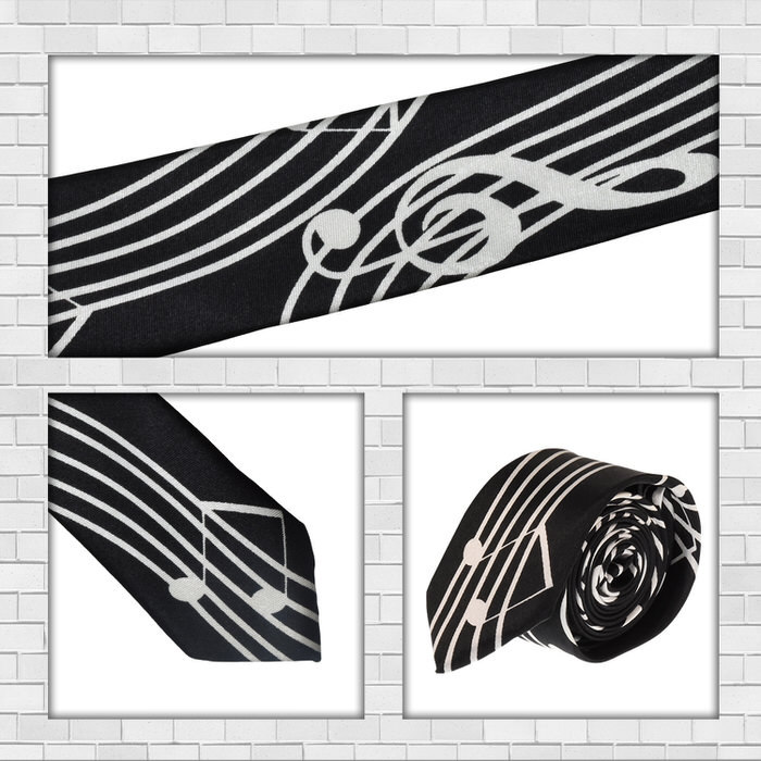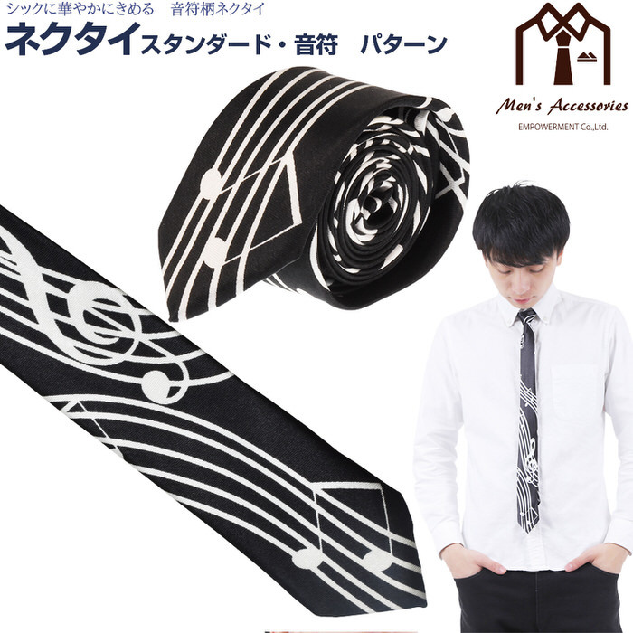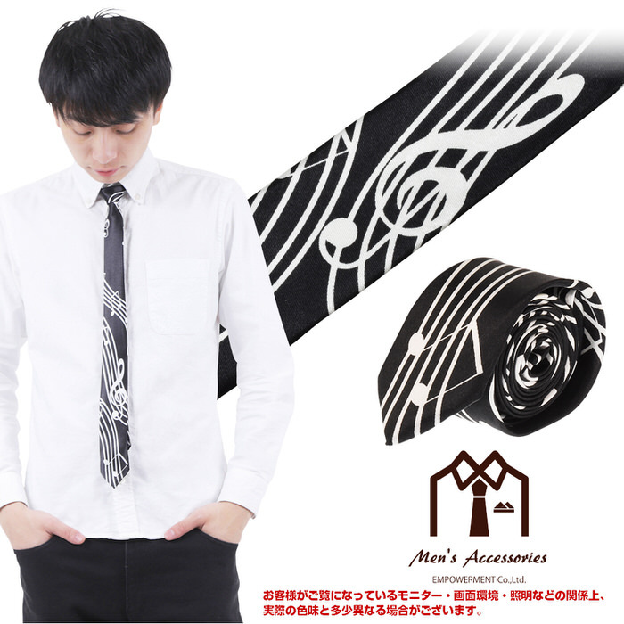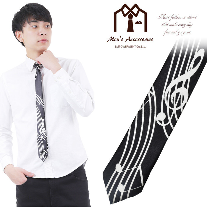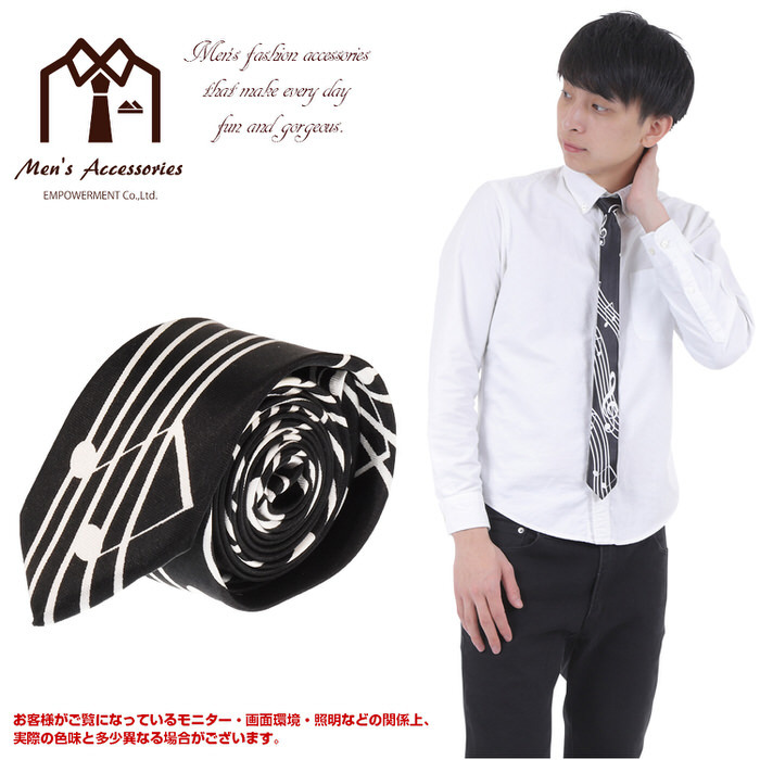 ■商品名 : ネクタイ ナロー 楽譜 黒 ブラック x 白 ホワイト