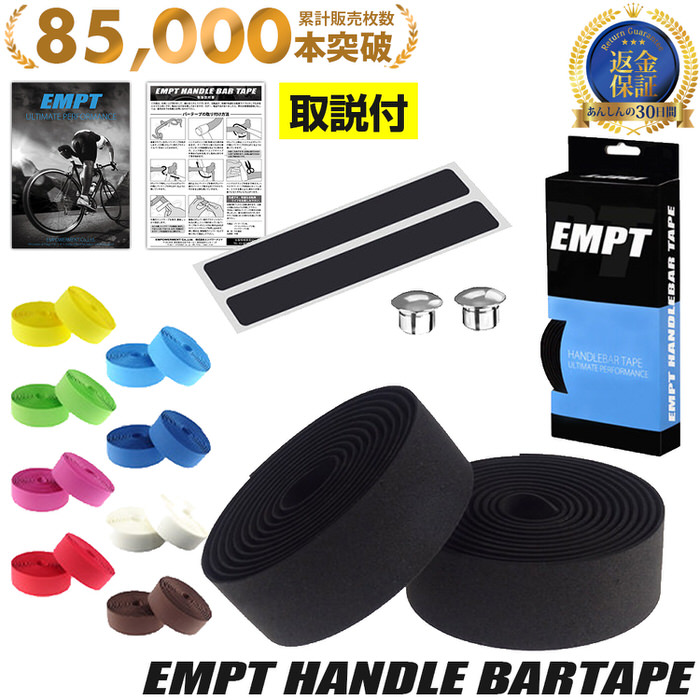 ■商品名: EMPT バーテープ EVA 単色 エンドキャップ エンドテープ セット | ブラック ブラウン レッド ブルー イエロー グリーン ホワイト ピンク 黒 茶 黄 青 緑 赤 白