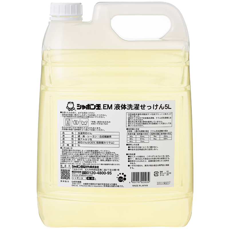 シャボン玉石けん EM液体洗濯石鹸 5L 詰替え em EM EM生活 石鹸 洗濯 洗濯洗剤 せっけん 無香料 環境にやさしい 液体せっけん 無添加 日用品 洗濯用品
