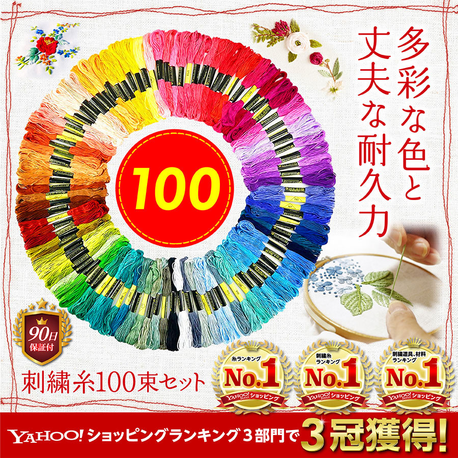 おまけ付き 刺繍糸 セット 100束 手縫い糸 ミサンガ クロスステッチ 初心者 キット 手芸 編み物 裁縫 手作り ハンドメイド ボタン付け アクセサリー 黒 白 赤