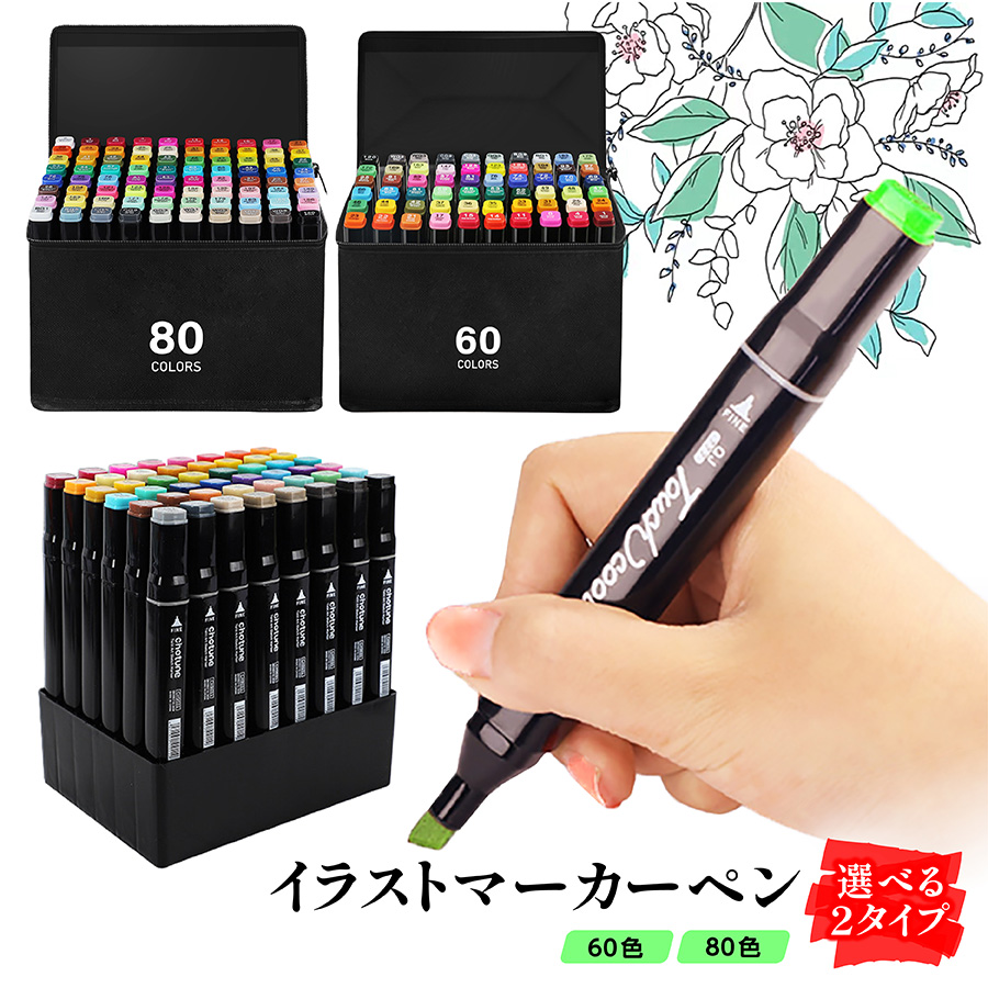 イラストマーカー 60色 80色セット マーカーペン プレゼント アルコールマーカー プレゼント 初心者 子供 小学生