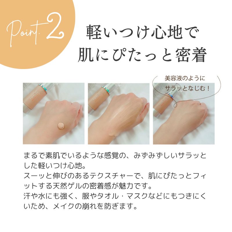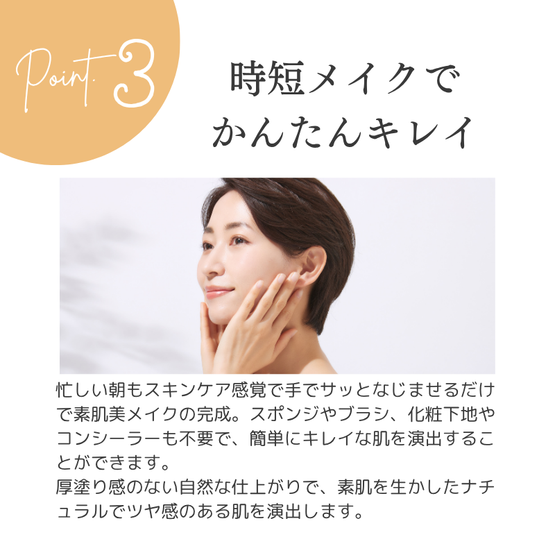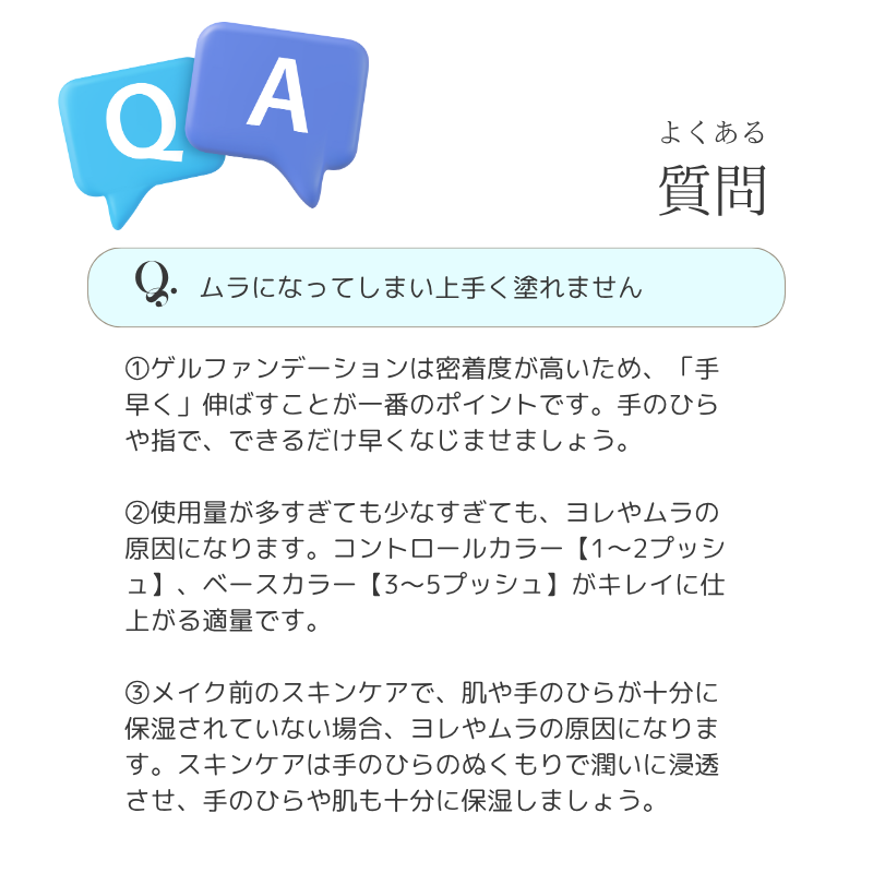 1プッシュ(小豆粒大)を手にとり、気になる部分に塗りのばし指でトントンとムラなくなじませます。
