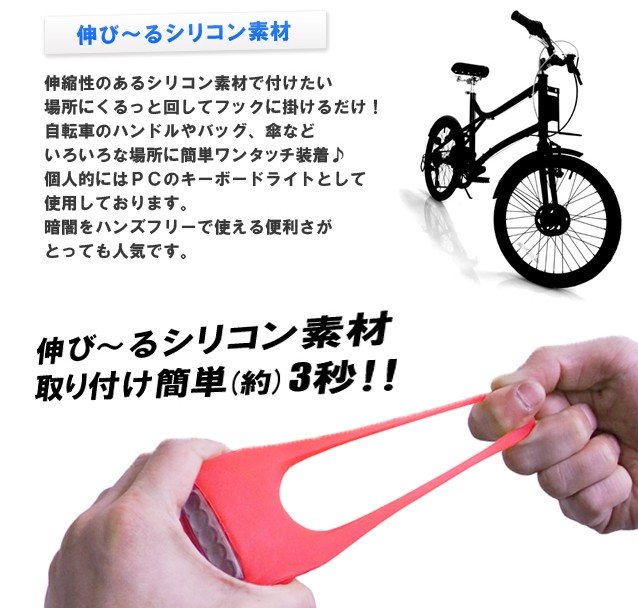 | 5LEDの高輝度ライト シリコン素材で伸縮性があり、ワンタッチで色々な物に付けれる高輝度LEDライトです。 スイッチを押すたびに切り替わる3モード 視認性の高いムービングモード付き 定番の自転車だけじゃなく、カバンやステッキ、カサやPCのキーボードライトとしても使える優れ物♪ 暗い場所でもハンズフリーで便利な5LEDシリコンライトが手放せなくなること間違いなし! 5LEDライトと別でサイドからも赤い光を放ちます。 サイドもムービング、点灯、点滅となっております) ▼仕様 本体サイズ(cm):縦5.5cm×横幅6cm×厚さ4.5cm 重量:約50g 点灯モード:3モード(ムービング、点灯、点滅) 電池:単四電池×3(別売り) 素材:シリコン シリコンカラー:ホワイト・ブルー・レッド・ブラック 発光色:ホワイト(サイドの発光色はレッドの光になります) ▼送料 ※定形外発送になります。 定形外発送の為、日時指定は受け付けておりません。 ※通常配送ご希望の場合は、別途送料が掛かります。 ▼注意事項 商品の状態に関する苦情・クレーム等は一切受付ません。 ご理解してください。 ※製品のカラー等は、モニターの環境により異なります。 また、商品のデザインは予告なく変更されることがありますので、ご了承ください。 |