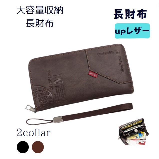 長財布 ラウンドファスナー メンズ レディース upレザー 大容量収納 ストラップ脱着式