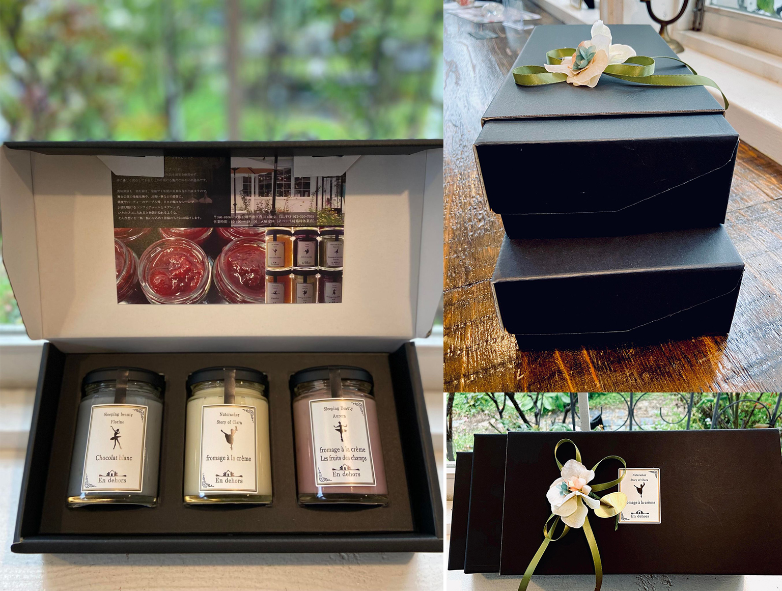 1箱に3本入る化粧箱です。黒を基調に、ゴールドでロゴをあしらったシンプルな化粧箱は、どのようなシーンにも合わせやすいです。フロマージュやコンフィチュール、蜂蜜、クラッカー(瓶入り)の中からお好きなものをセレクトして詰める事が出来ます。(2箱ご購入でスリーブに入れて6本入りもご用意できます。※スリーブは無料です)(※スリーブご希望の場合、備考欄にその旨ご記入願います。)(※熨斗がけが必要な方は備考欄へご記入願います。)(※通常はリボンラッピングでお届けいたします。)【組み合わせ一例】◎1箱の場合・フロマージュorコンフィチュールの中からお好みの商品を3本=2500円・フロマージュorコンフィチュールの中からお好みの商品を2本+瓶クラッカー1本=2020円・フロマージュorコンフィチュールの中からお好みの商品を2本+国産蜂蜜シリーズから1本=2950円◎2箱(スリーブ)の場合※お箱代が500円・フロマージュorコンフィチュールの中からお好みの商品を6本=5000円・フロマージュorコンフィチュールの中からお好みの商品を4本+瓶クラッカー2本=4040円・フロマージュorコンフィチュールの中からお好みの商品を5本+国産蜂蜜シリーズから1本=5450円