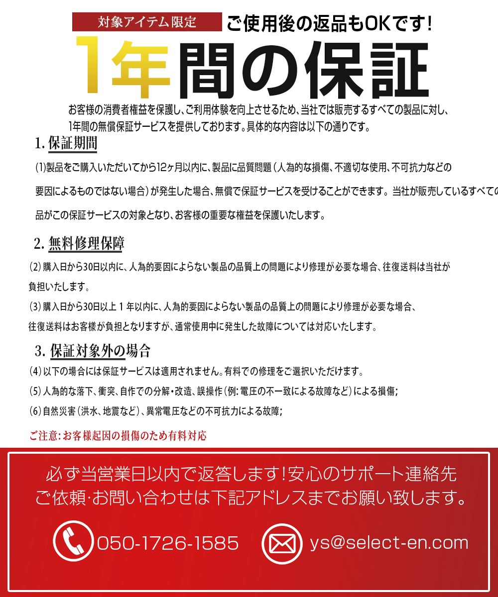 エアダスターは出荷前に厳格な品質管理を行っておりますが、万が一お届けしたエアダスターに不具合が発生した場合、「注文履歴」ー「出品者に連絡」から弊店までご連絡ください。万全なアフターサービスを提供いたします。