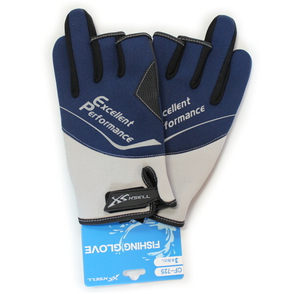 手袋 フィッシンググローブ ブルー 3本指出し エクセル CF-725 [ML]