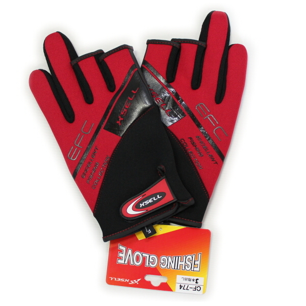 手袋 フィッシンググローブ レッド 3本指出し エクセル CF-774 [ML]