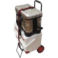 | コメント | フックをかけてベルトを引くだけ!荷締ベルト 幅広ベルト式の荷締ベルト。 フックをかけてベルトを引っ張るだけで荷締できるのでスピード装着。 長さ調整にコキアジャスターを採用。ベルトを引くだけで締まります。 ベルトの締め込みを行わない側はゴムになっているため締め込んだ荷物がずれにくく安定感抜群。 荷物をベルト幅50mmの面で支えるのでしっかり固定可能。 フックを含めた全長が約1.2mとキャリーカートに最適。 幅広なキャリーカートやワカサギのジャンボスレーにも複数本使用することで高安定に使えます。