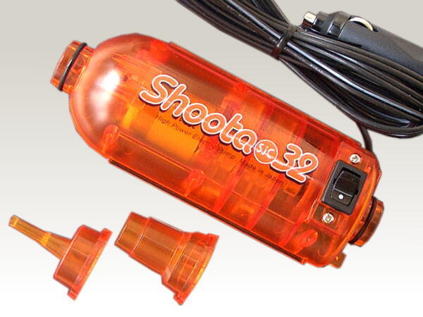 | コメント | 浮き輪・家庭用プール・ゴムボートなどのゴム・ビニール製品のエアー注入・排出に使用します。 電源のない海やレジャー地でも車のシガーライター・ソケットがあれば使用できます。 アキレスゴムボート(ローボート)にも使用できます。 アキレスローボートに使用する場合、仕上げにフットポンプでの加圧が必要ですが、フットポンプのみでエア注入する場合に比べてかなり楽ができます。