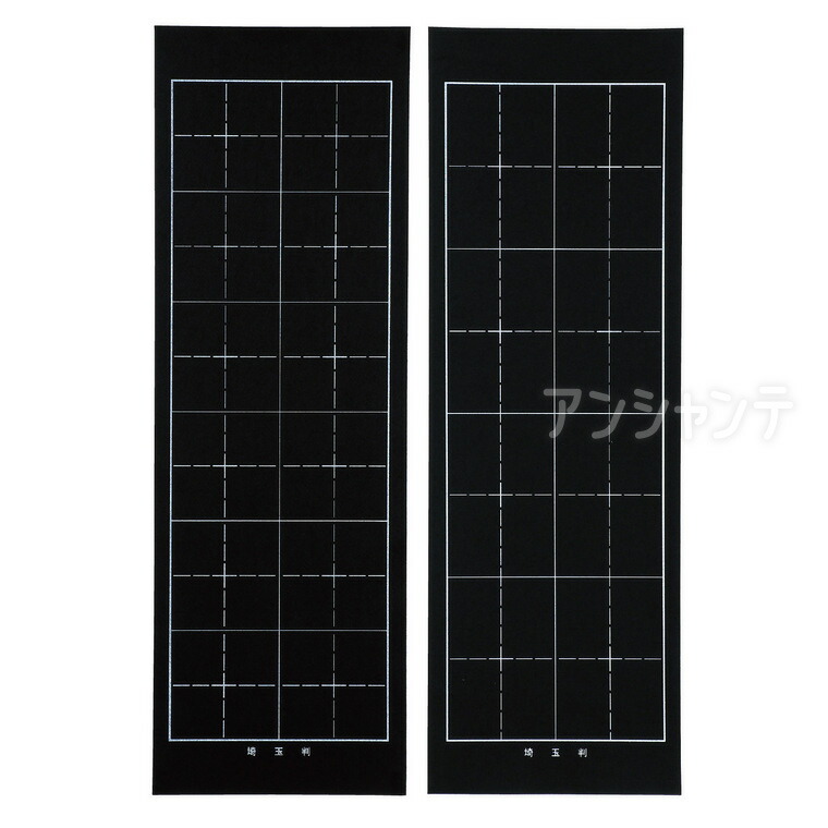 埼玉判サイズに対応した書き初め用下敷きです。両面に3文字・4文字用の罫線が入っており、用途に合わせて使い分けが可能。罫線を目安にすることで文字の大きさや配置のバランスが取りやすく、きれいな作品に仕上がります。学校の書き初め授業や書道大会などで定番の使いやすいサイズです。