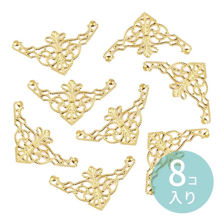 8個入 27mm×48mm 透かしパーツ コーナー金具 フィリグリー ゴールド【ゆうパケット対応】
