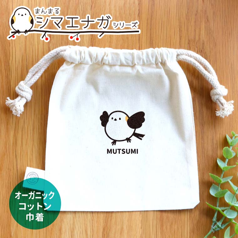 シマエナガシリーズ オーガニックコットン巾着 ナチュラル アンシャンテラボ【ゆうパケット対応】