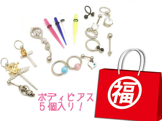 バラエティ豊富に取り揃えたボディピアスが計5コでこのお値段!!送料無料!