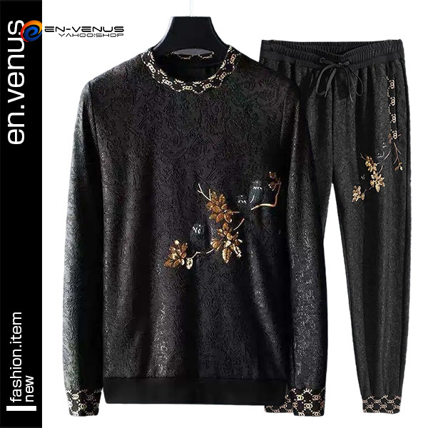 長袖プルオーバーパーカーとロング丈スエットパンツのオシャレなセットアップジャージです。