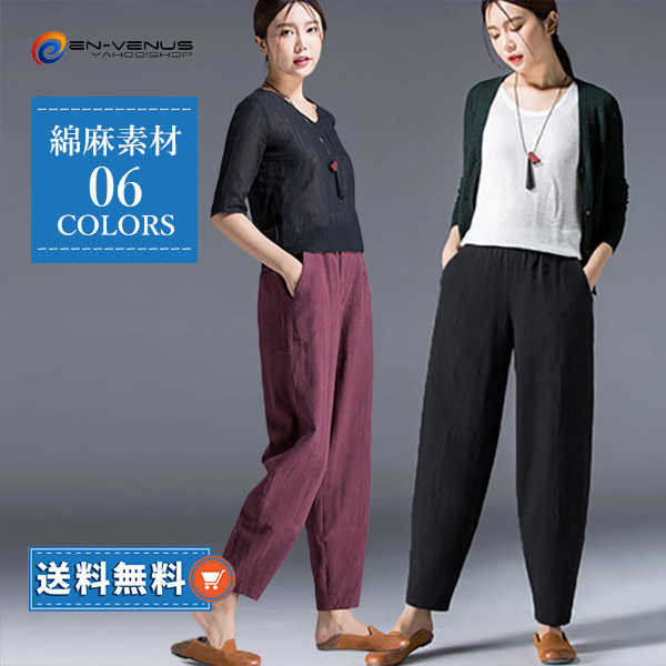 送料無料 レディース 綿麻 麻混 サルエルパンツ ワイドパンツ ガウチョパンツ リネンパンツ イージーパンツ ゆったり 着痩せ 速乾 通気 軽量 夏服 夏物