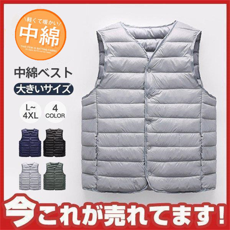 中綿ベスト メンズ 中綿ダウンベスト ライトアウター 大きいサイズ キルティング 秋冬 防寒 防風 暖かい 中綿入り カッコイイ 軽量 スリム カジュアル