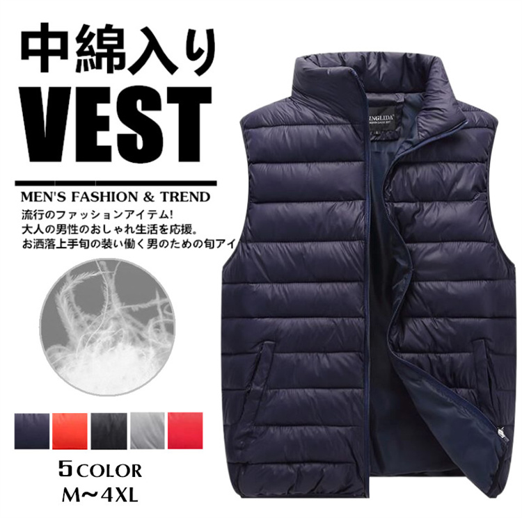 中綿ダウンベスト メンズ ベスト キルティング ライトアウター 中綿ベスト 袖なし 男女兼用 秋冬 防寒 防風 保温 大きいサイズ アウトドア カジュアル