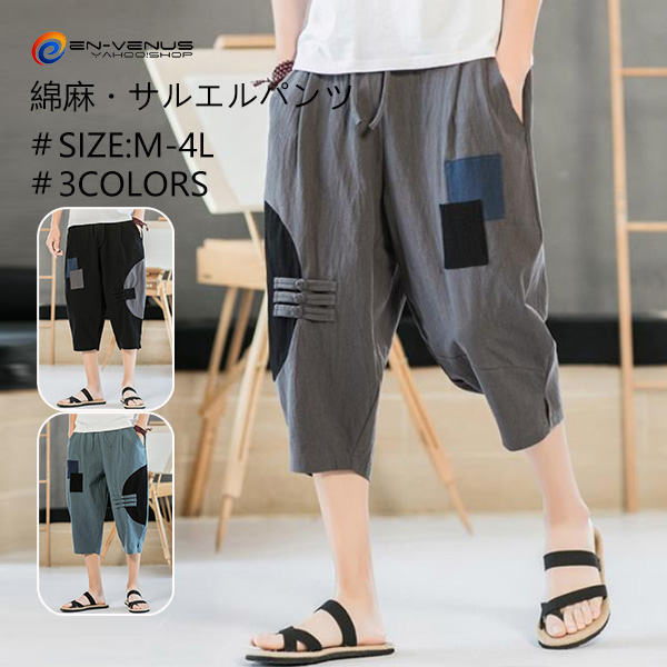 サルエルパンツ ワイドパンツ リネンパンツ 綿麻 七分丈 エスニック ジョガーパンツ ハロンパンツ メンズ 吸汗速乾 20代 30代 40代 大きいサイズ カジュアル