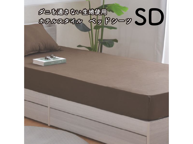 【メーカー直送】新ダニを通さない生地使用ベッドシーツ セミダブル 無地ブラウン