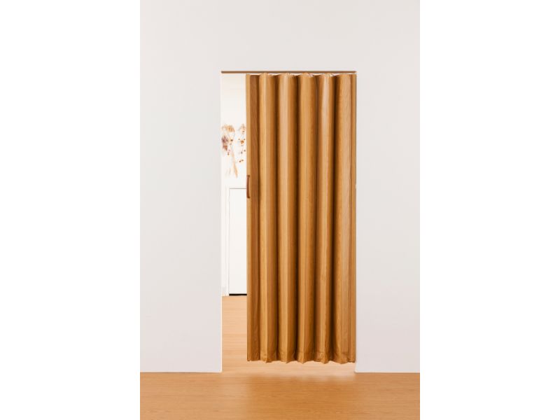 サイズ展開も豊富なスタンダードな木目調アコーデオンドアです