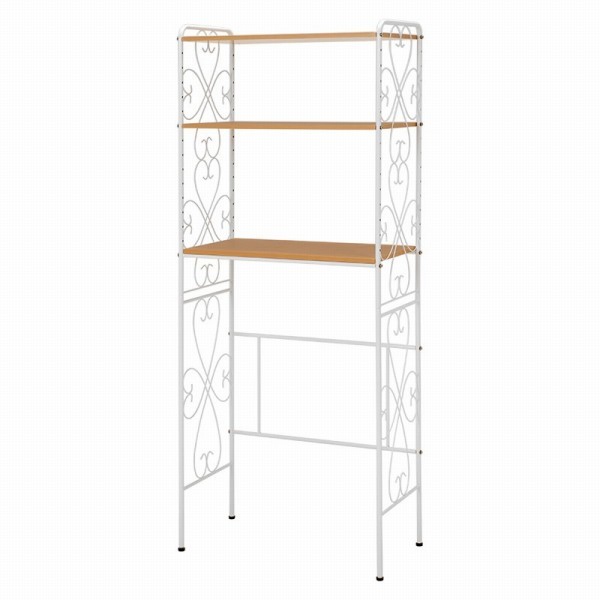 アイアンの曲線がエレガントで、洗濯機の上を有効活用できる洗濯機ラック。