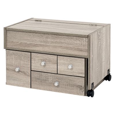 伸縮式なので置き場所によって横幅を変えられます。メイク道具や小物などたっぷり収納でき、コンセント付きなのでヘアアイロンも使用可能