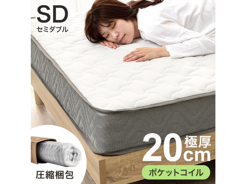 体型に沿うように点で支え、体圧を分散するポケットコイルマットレス。圧縮ロールタイプ。セミダブルサイズ