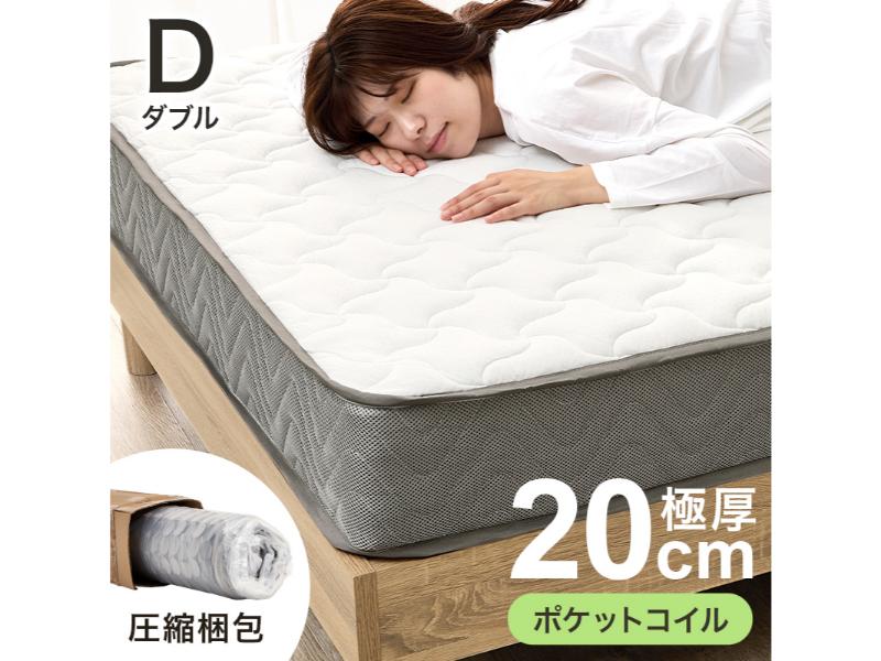 体型に沿うように点で支え、体圧を分散するポケットコイルマットレス。圧縮ロールタイプ。ダブルサイズ