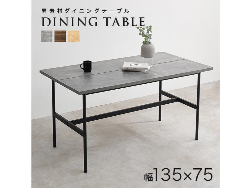 天板中央にスリットを入れ、スタイリッシュなデザインのダイニングテーブル。本格的な素材の柄が楽しめる天板とスチールの脚部を使った異素材の組み合わせ。