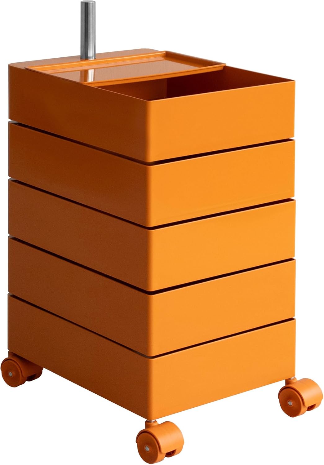 4輪キャスターでラクラク移動できます。棚はそれぞれ360度回転式で取り出しやすく、リビングや寝室、デスクなど色々なシーンでマルチにお使いいただけます。ベビー用品の収納にもオススメ。