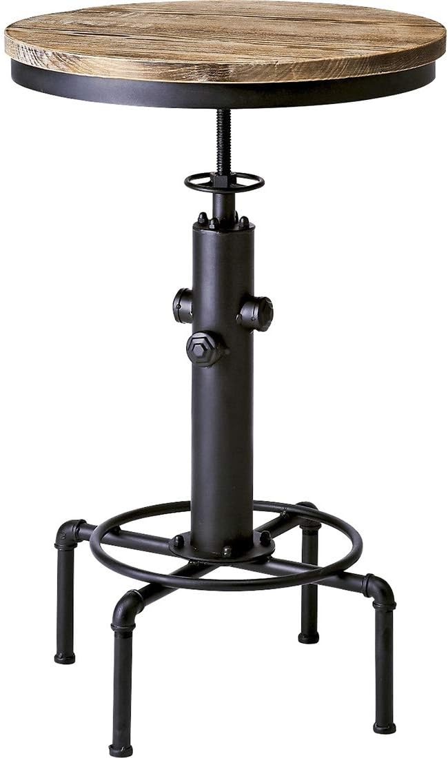 ヴィンテージ加工された広々丸い天板と、配水管のような特徴的なデザインが目を引く脚フレームはインテリア性もバツグン。高さを83〜100cmで昇降できるので使う人やチェアの高さに合わせて簡単に調節可能です。