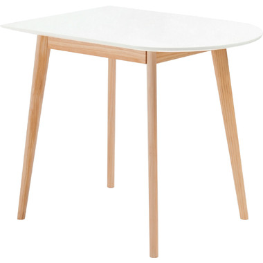 一辺に曲線を取り入れたやさしいフォルムで、凹凸のない滑らかなホワイト天板と、天然木の脚の組み合わせが可愛らしさを演出してくれます。