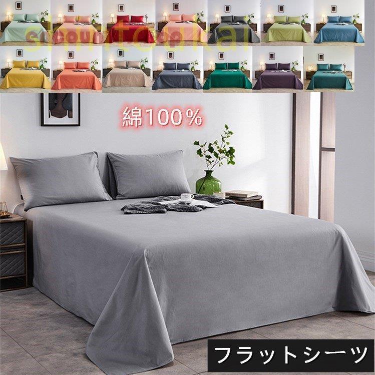 フラットシーツ ベッドカバー 無地 オシャレ 四季通用 シーツカバー 180*230 ロング 大判 綿100% 通気 柔らかい 洗える インテリア 寝具 単品