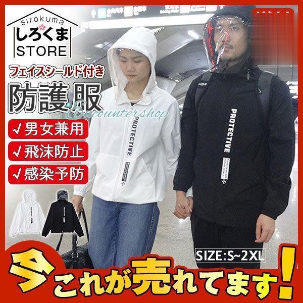 フェイスシールド付き防護服 保護服 フェイスガード 透明シールド 防護マスク 防塵 花粉症 便利グッズ 保護具 洗える コロナ 作業服